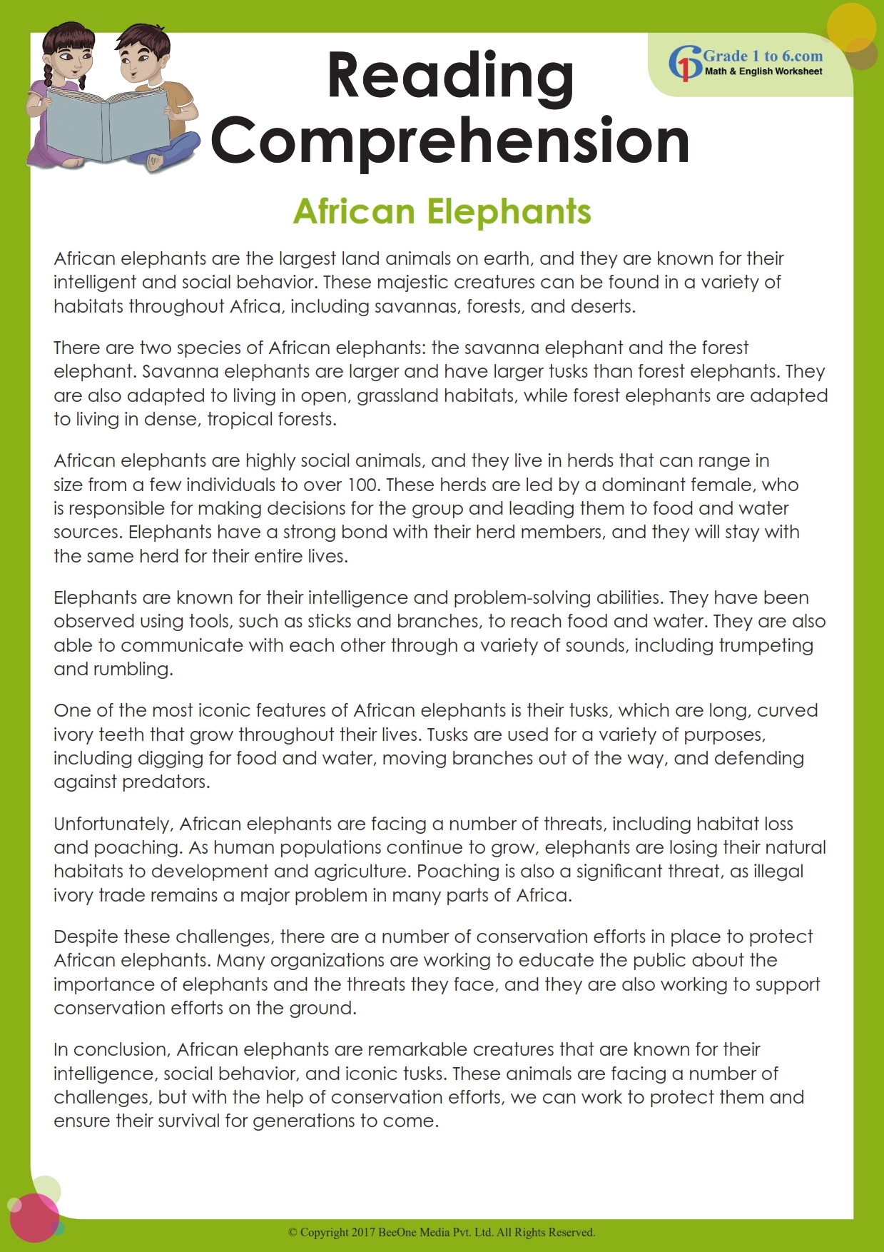 Grade 6 Reading Comprehension Grade1to6