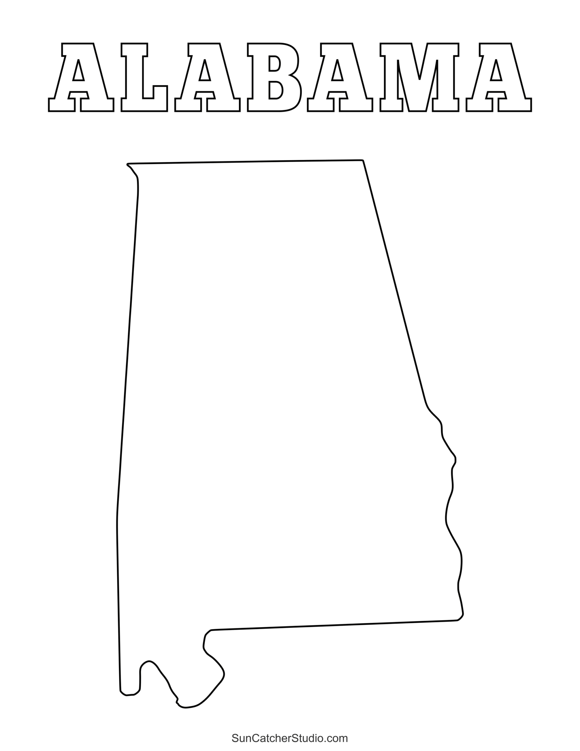 Alabama Map Outline Printable State Shape Stencil Pattern Free Printables Lettering SVG Files Tools Apps