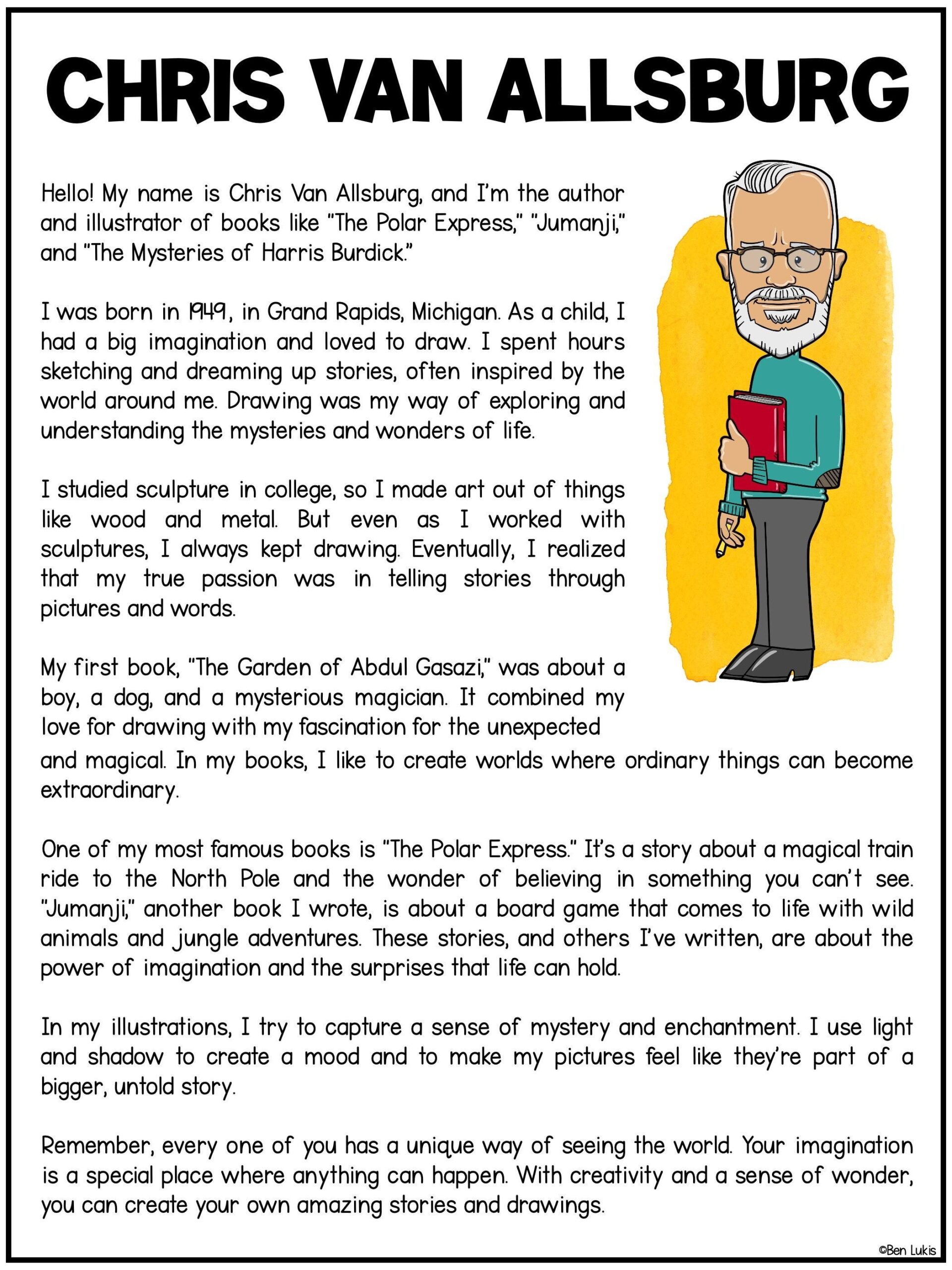 Chris Van Allsburg Author Study Polar Express Jumanji PDF Download Etsy