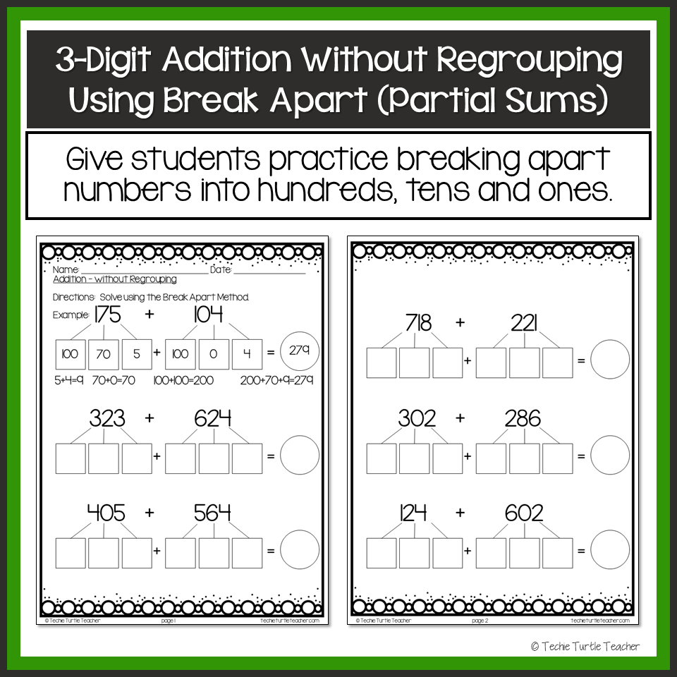 3 Digit Addition Without Regrouping Using Break Apart Partial Sums Strategy Made By Teachers