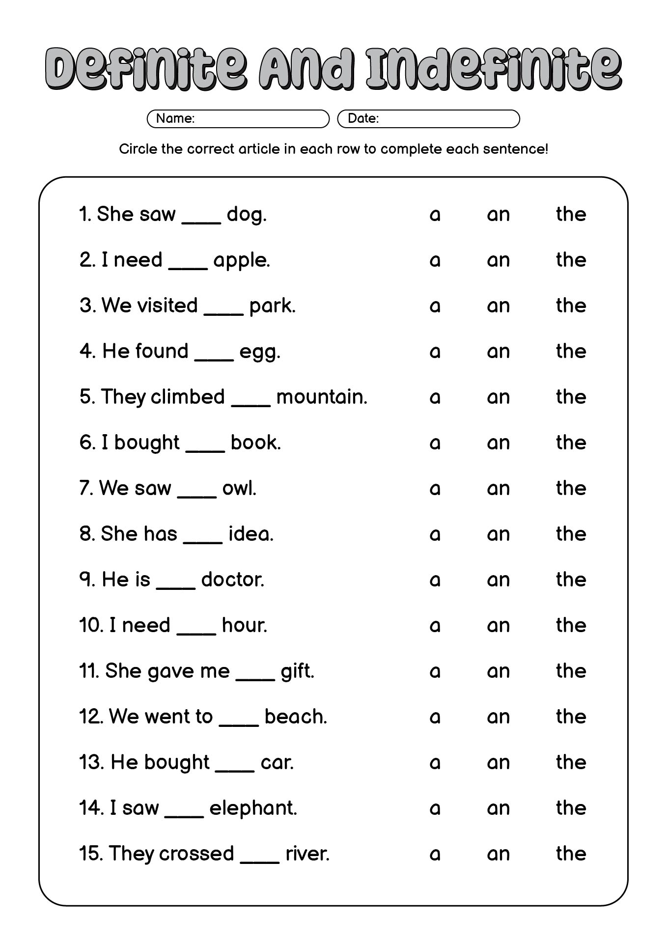 Learning English grammar can be a daunting task, especially when it comes to understanding the nuances of definite articles. Definite articles, such as ‘the’, are used to specify a particular noun or noun phrase, and their correct usage is essential for clear and effective communication. However, mastering the use of definite articles can be challenging, even for native English speakers. Fortunately, there are many resources available to help learners improve their grammar skills, including free printable English grammar worksheets.