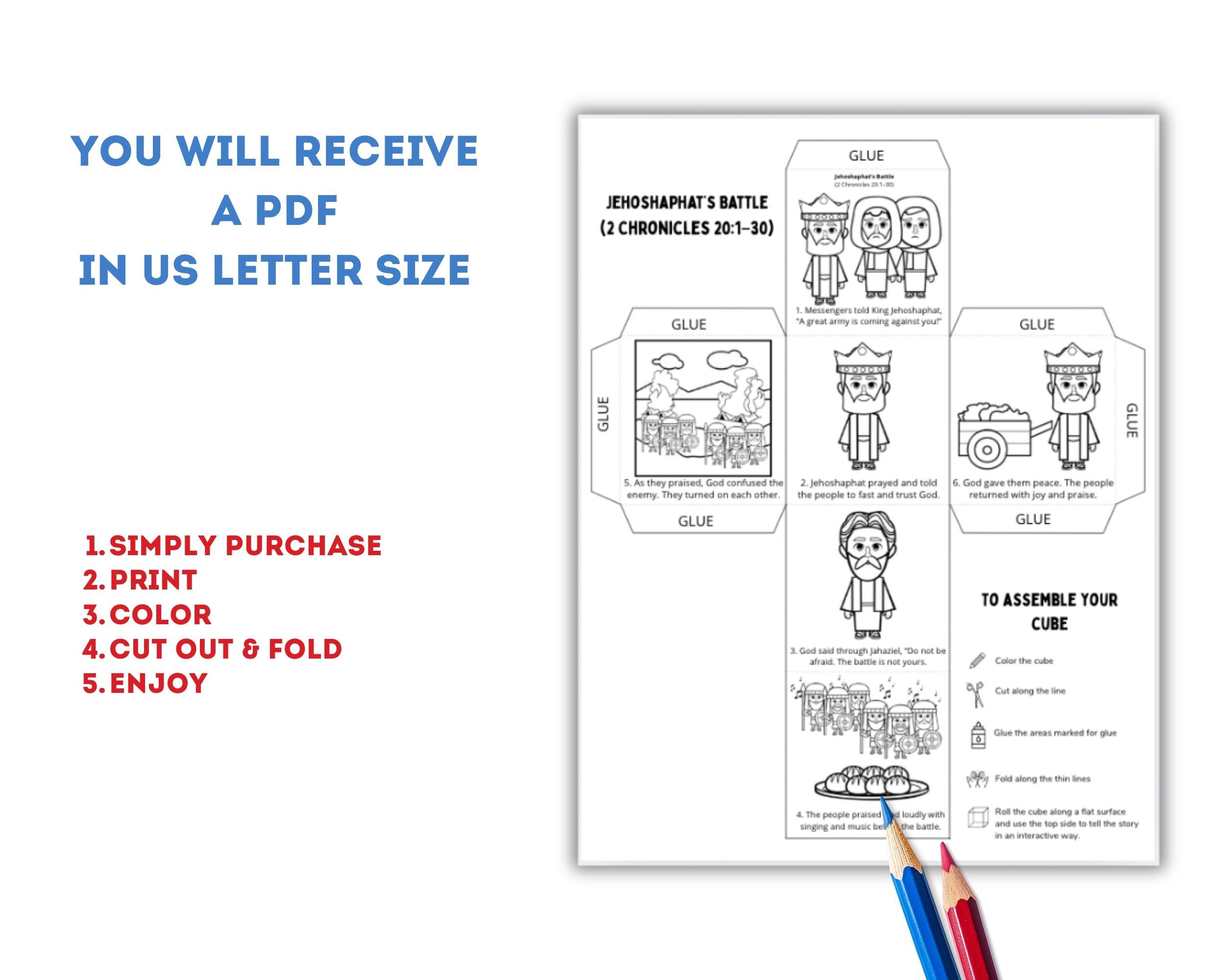 Jehoshaphat Bible Story Coloring Cube 2 Chronicles 20 Printable Craft For Kids Jehoshaphat S Battle Activity For Sunday School Etsy