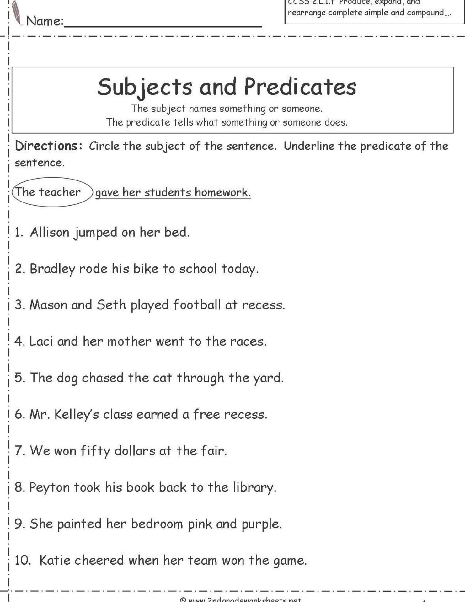 Free Printable Worksheets 2nd Grade With Predicate