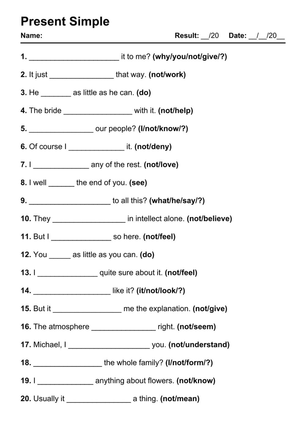 101 Present Simple PDF Worksheets With Answers Grammarism