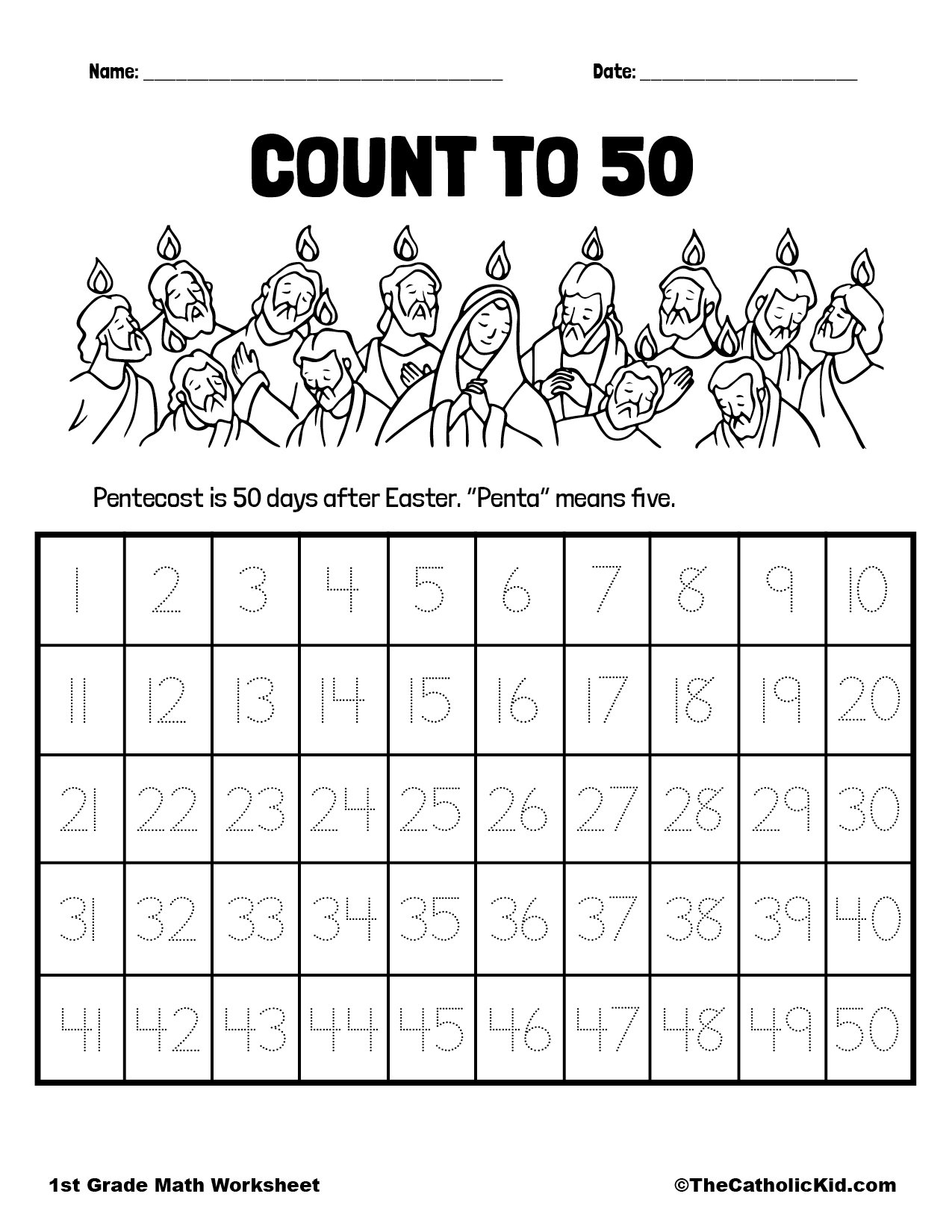 Count To Fifty 1st Grade Math Worksheet Catholic Themed Pentecost