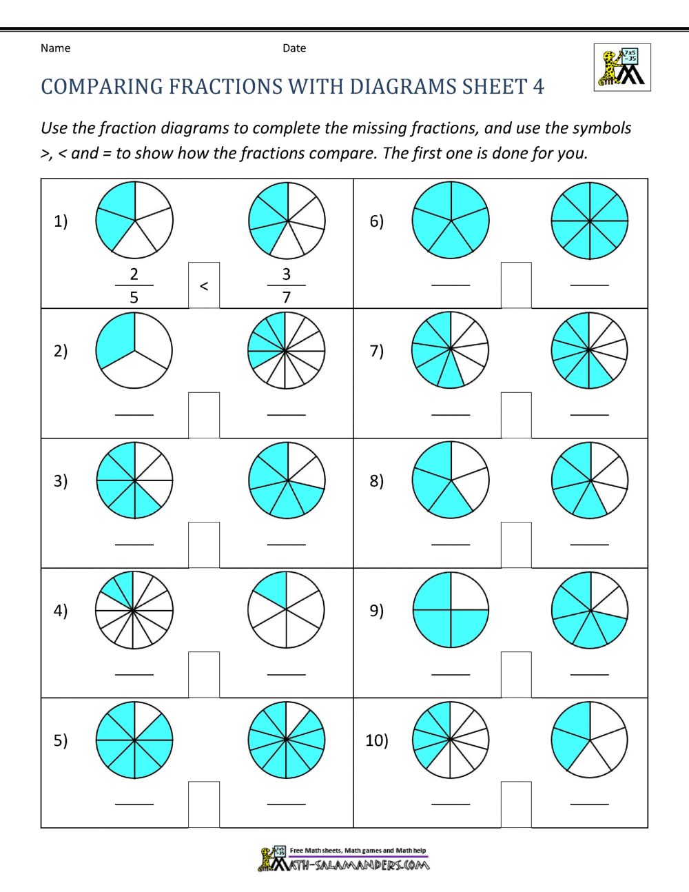 Free Printable Worksheets On Comparing Fractions
