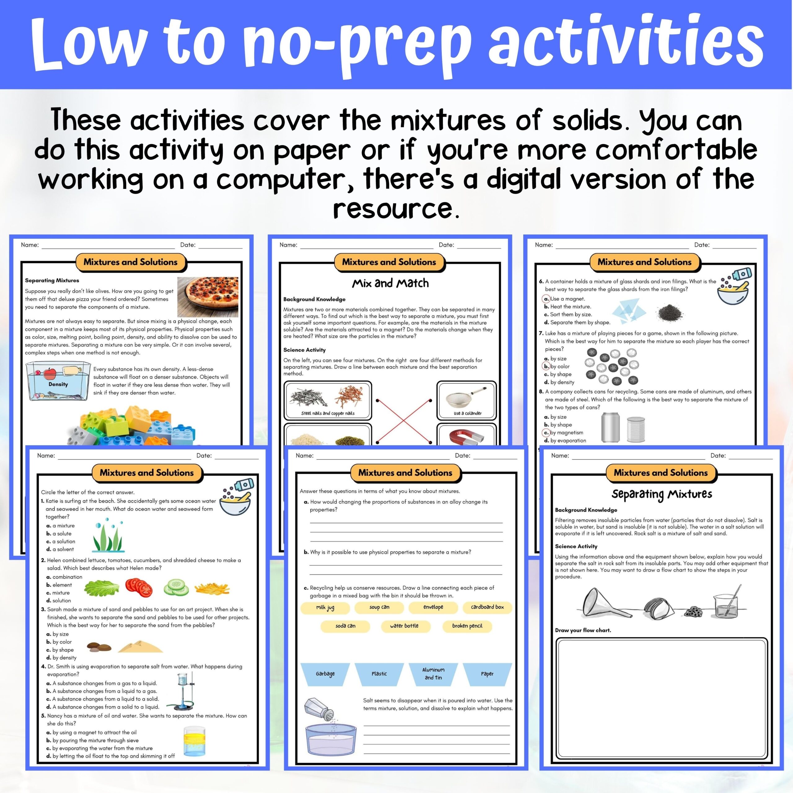 Using free printable worksheets on mixtures and solutions has several benefits. For one, it allows students to practice and reinforce their knowledge of the concept in a fun and engaging way. It also helps to develop critical thinking and problem-solving skills, as students are required to analyze and solve problems related to mixtures and solutions. Additionally, printable worksheets can be used to assess student understanding and identify areas where they need extra support or review.