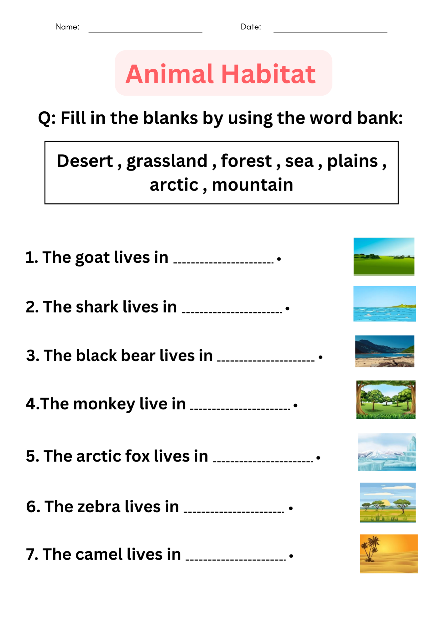 Storyboard That Free Animal Habitat Worksheets