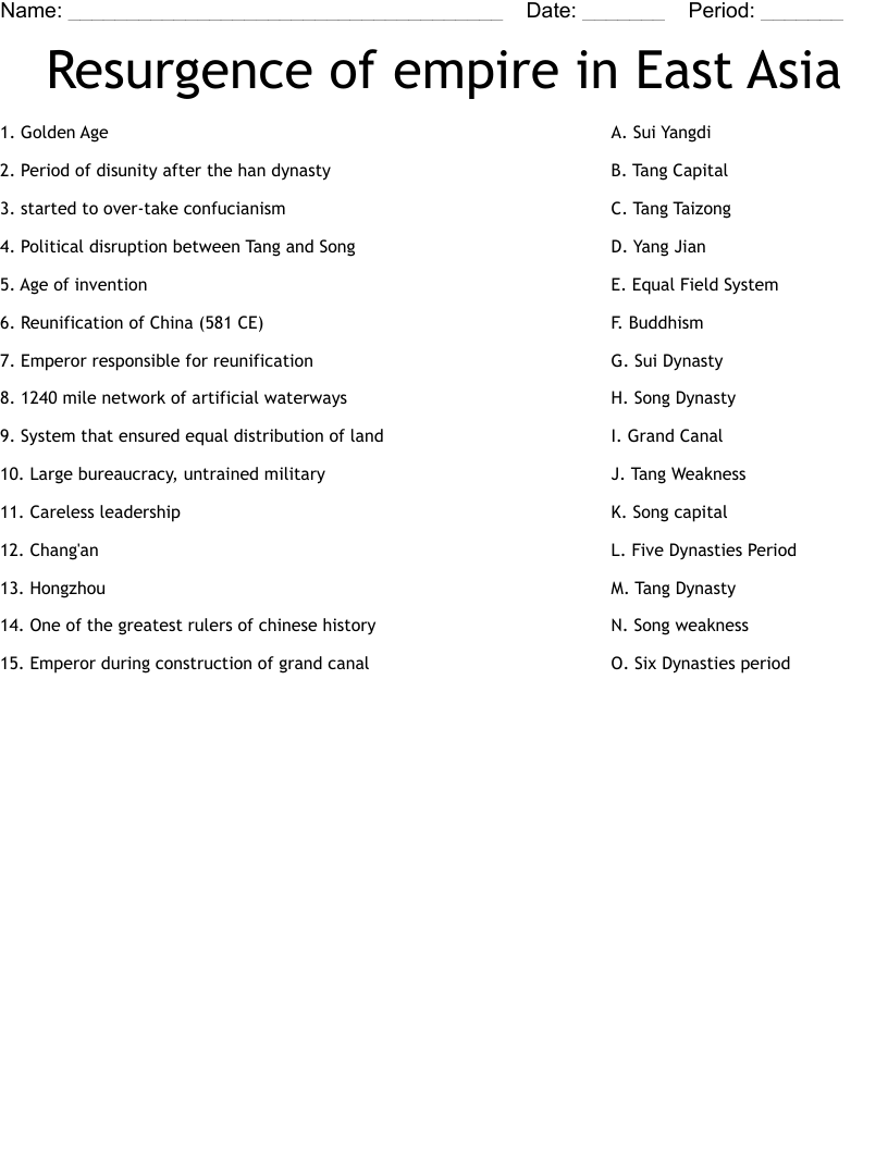 One of the most effective ways to learn about medieval history is through hands-on activities and visual aids. A printable worksheet specifically designed for 7th-grade students can be an invaluable tool in the classroom or at home. Such a worksheet can include a variety of exercises, such as timelines, maps, and short-answer questions, all tailored to the curriculum requirements for teaching medieval history. By incorporating a worksheet about the dynasties of Japan and China into their studies, students can develop a more nuanced comprehension of this critical period in world history.