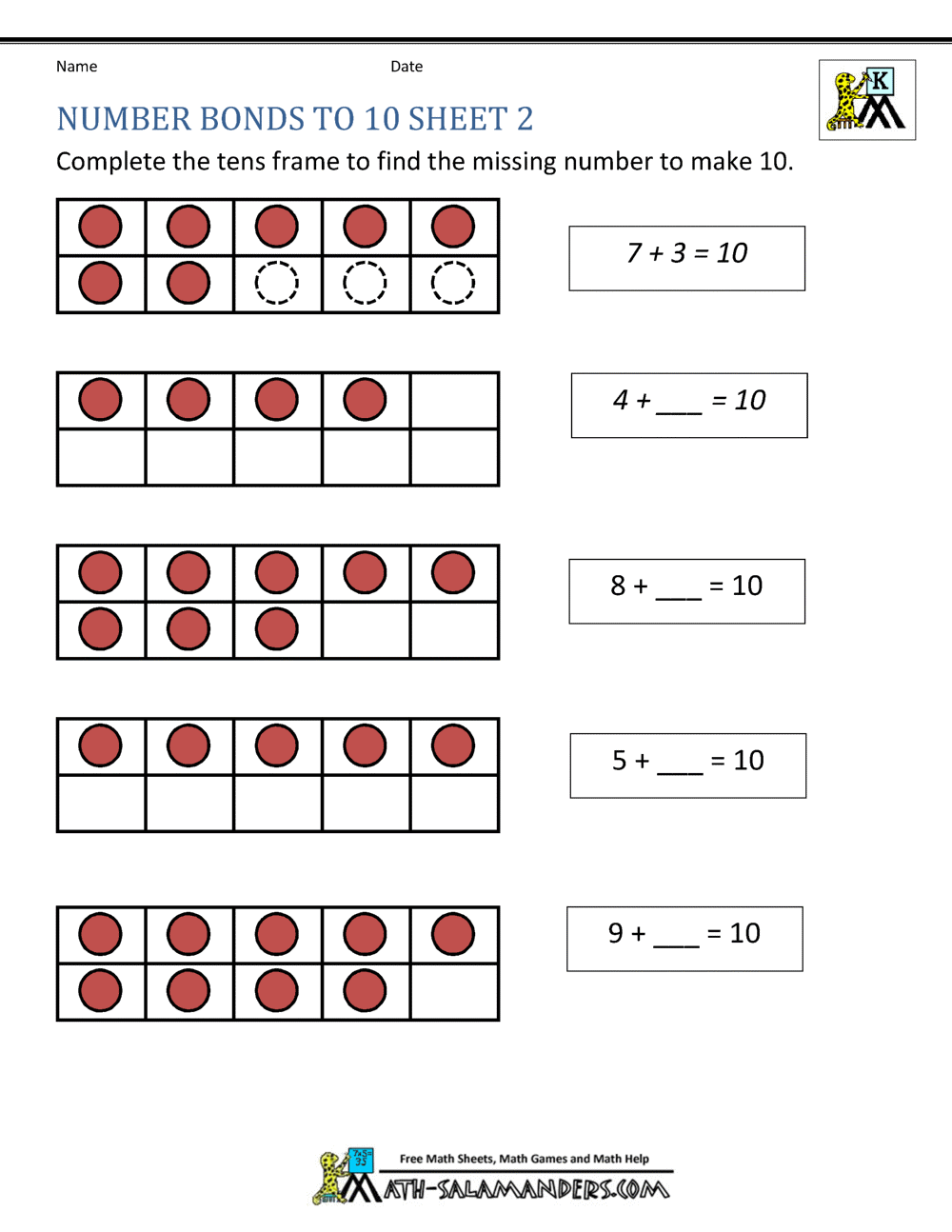 Number Bonds To 10 Worksheets
