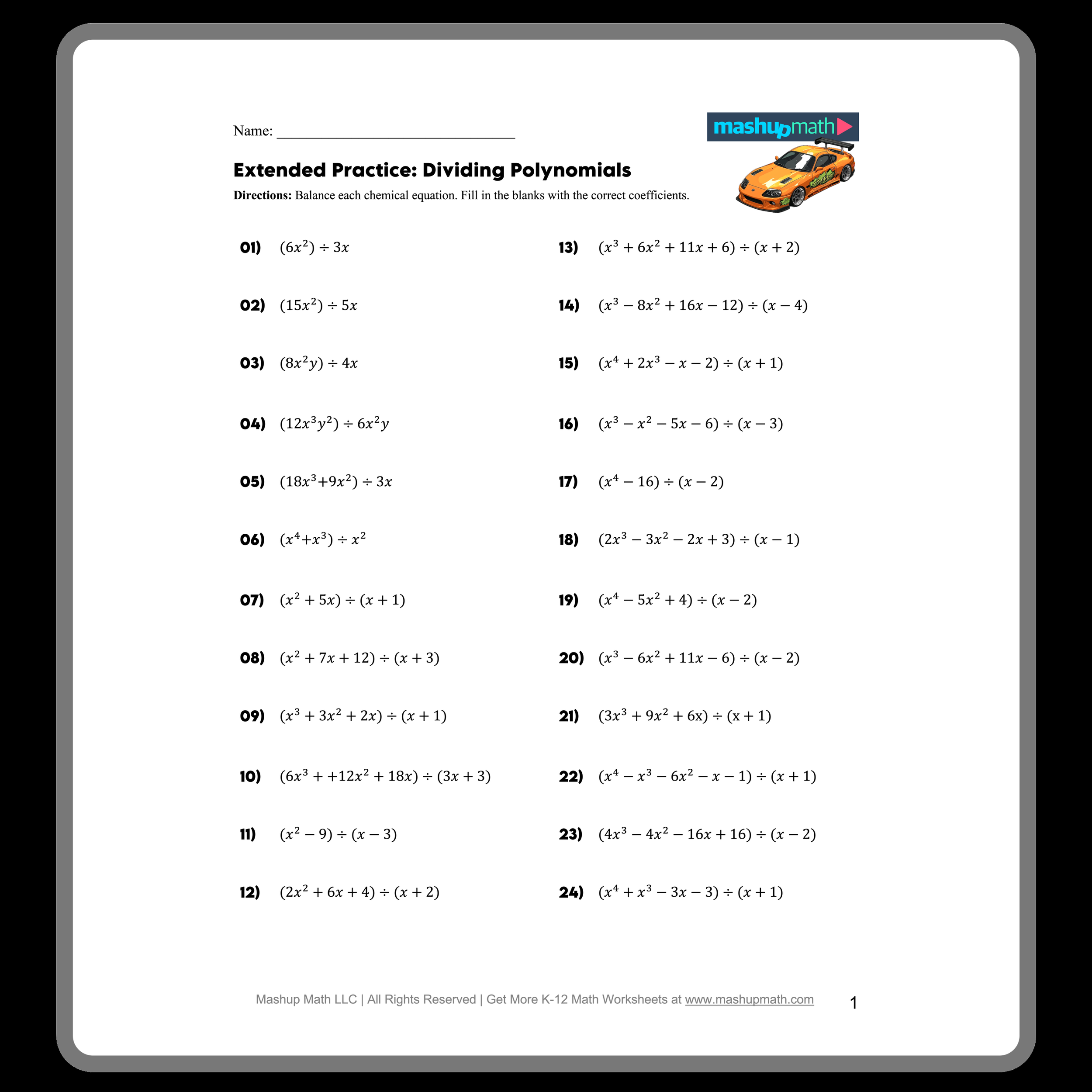 Dividing Polynomials Worksheets With Answers Mashup Math
