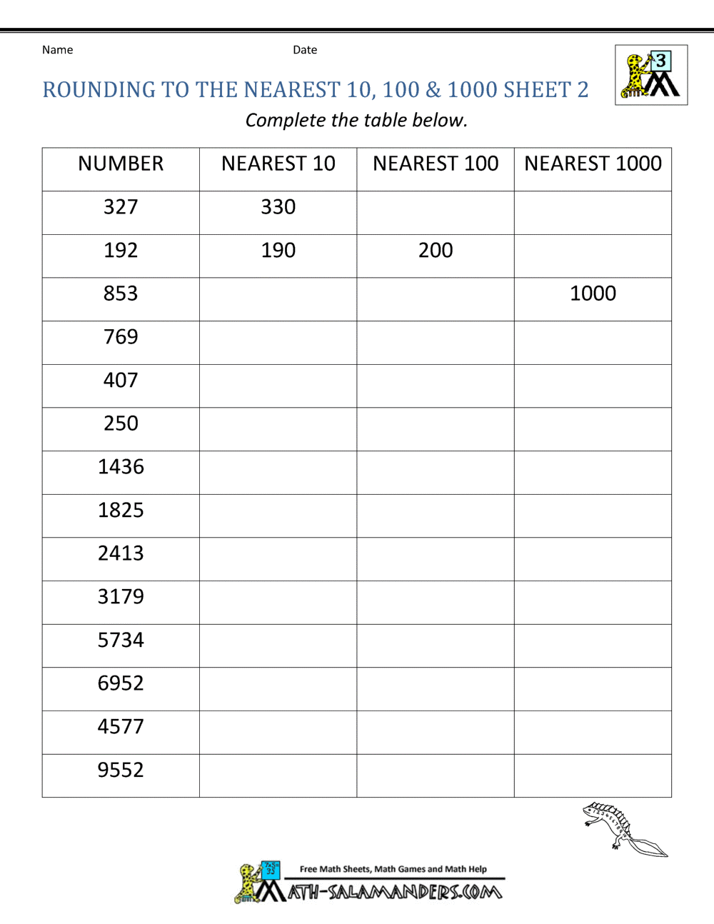 Printable Rounding Worksheets To The Ten Thousands