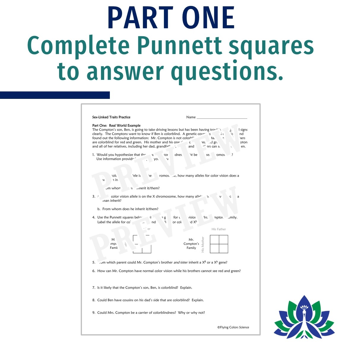 Sex Linked Traits Worksheet Flying Colors Science