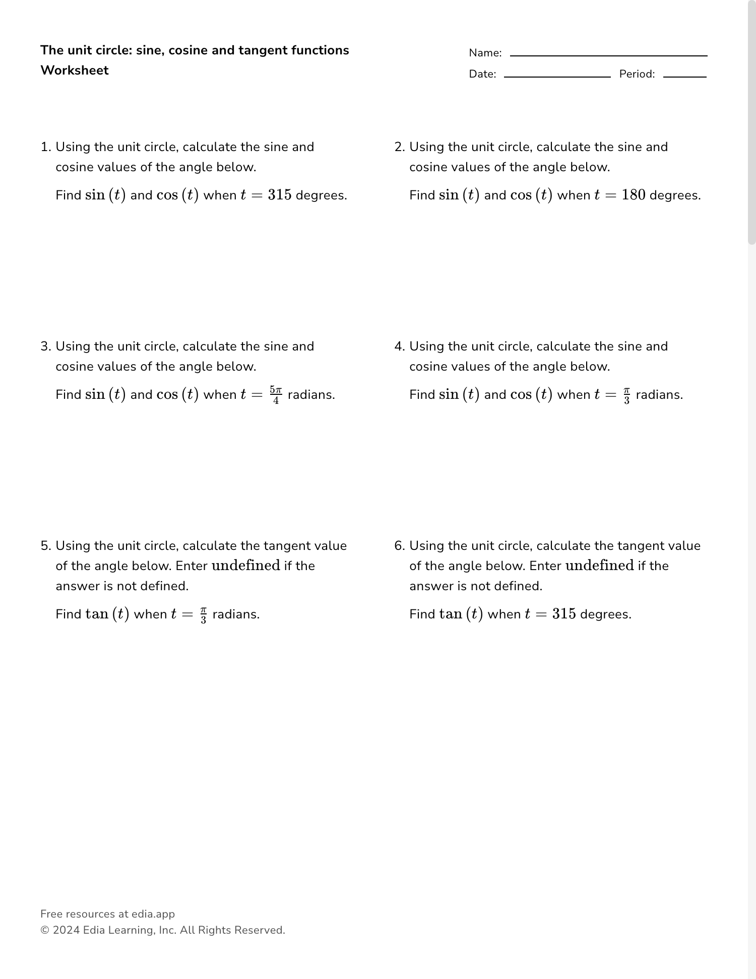 The benefits of using printable worksheets for learning sine, cosine, and tangent are numerous. They offer a structured approach to learning, allowing students to progress from basic to more complex problems. Additionally, worksheets can be used anywhere and at any time, making them ideal for home study or classroom use. They also provide immediate feedback, as learners can check their answers against the solutions provided, helping to identify areas where more practice is needed.