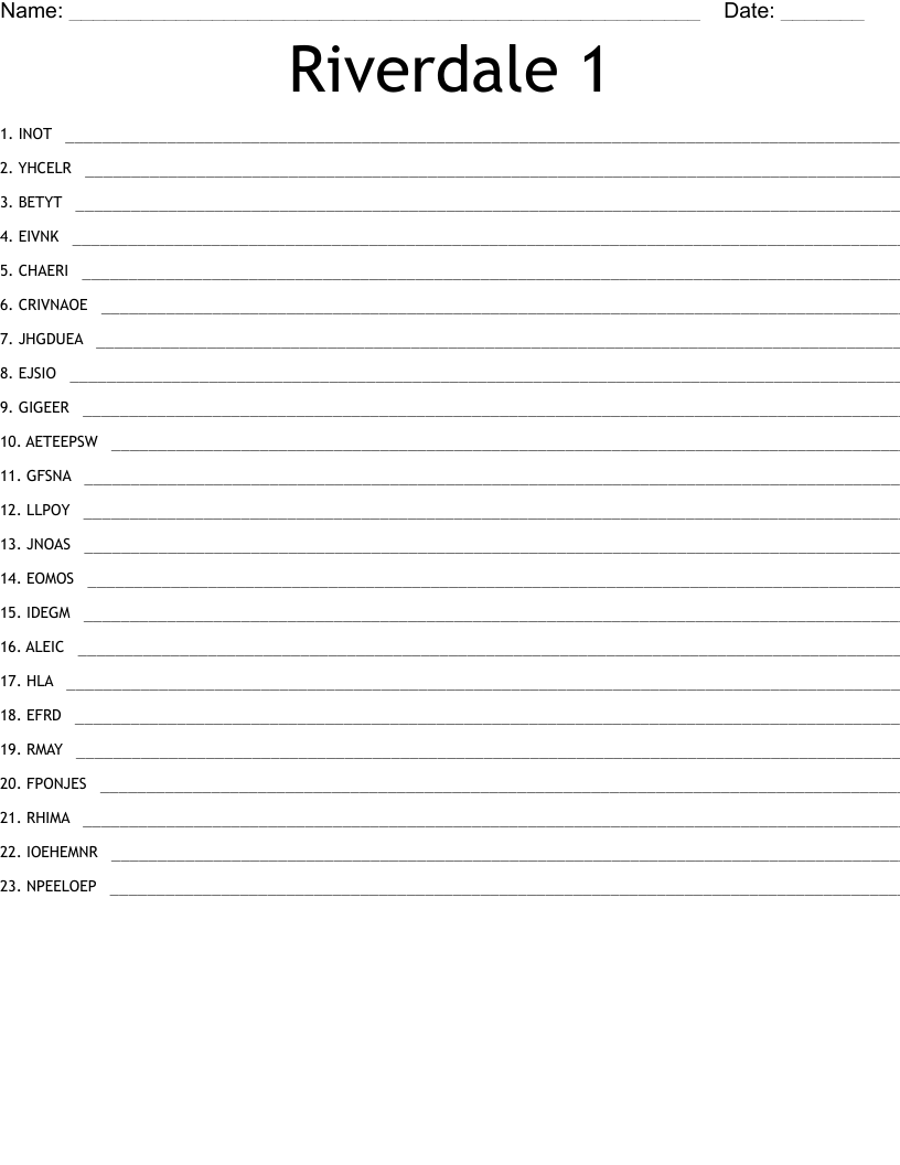 Riverdale 1 Word Scramble WordMint
