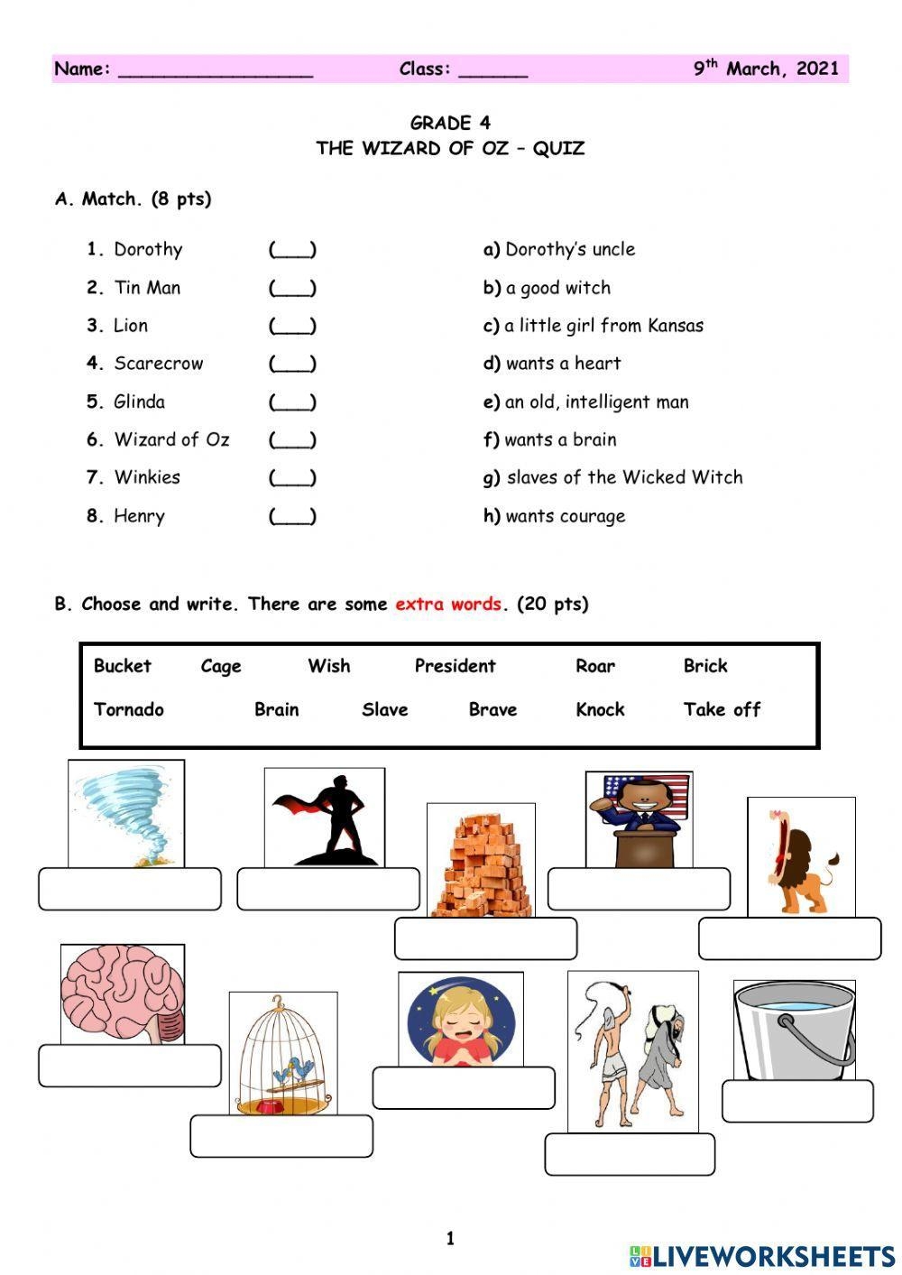 First Grade English Worksheets Wizard Of Oz Themed Gym Craft Laundry