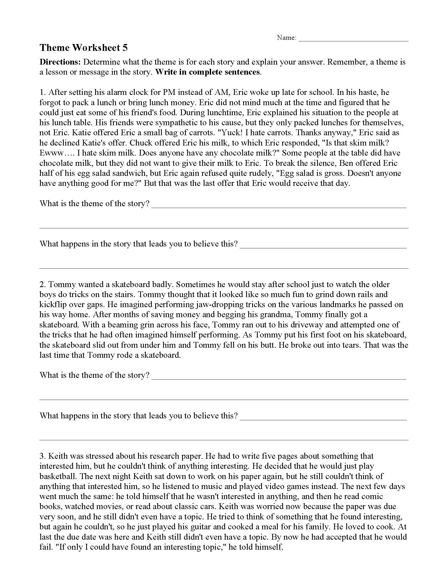 Theme Worksheets Ereading Worksheets