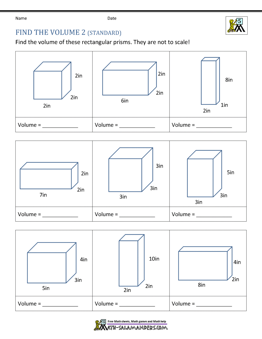 5th Grade Volume Worksheets